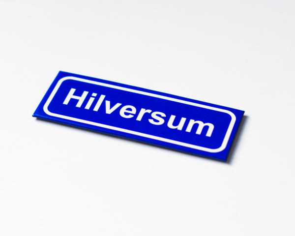 Mooie kwaliteit koelkastmagneet met plaatsnaambord Hilversum. Afmeting 11,6 cm breed x 4,1 cm hoog.